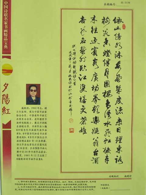 施晓诗同志2003年退休后笔耕不辍,近日又传喜讯,书法作品入选《中国诗联名家书画精品宝典》。