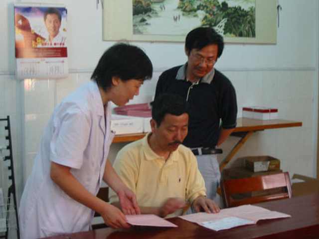 7月8日,省人力资源和社会保障厅医保处童处长一行4人在市劳动与社会保障局副局长王大虎、市医保中心主任何正坤陪同下,来院看望参加我市首次免费健康体检的居民,并向体检中心的工作人员致以亲切慰问。