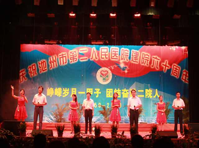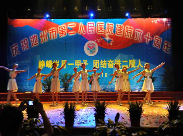 9月25日,池州市第二人民医院建院60周年院庆专场文艺晚会在池州秋浦影剧院举行。区委宣传部部长林芳、区人民政府副区长程菲菲、区卫生局局长方忠生及部分祝贺单位领导观看了晚会。