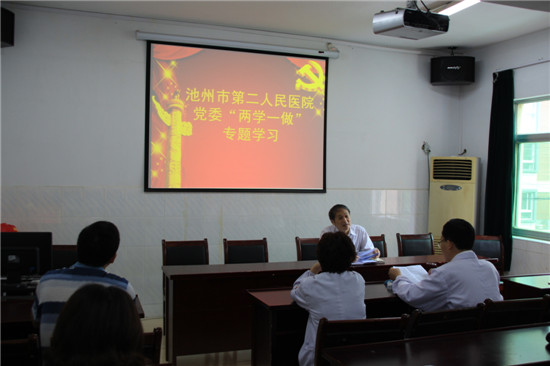 会上,党办主任张庆多首先传达了《池州市第二人民医院“两学一做”学习教育计划》,随后,机关党支部书记吴鹏程带领大家学习了《习近平总书记系列重要讲话读本》部分章节。