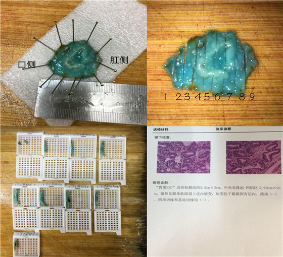 近日,我院消化内科刘东升主任医师和许峰副主任医师在皖南医学院附属弋矶山医院消化科何池义主任的指导下,成功开展了池州市首例内镜粘膜下剥离术(endoscopic submucosal dissection,ESD),完整切除患者的病变。术后病理在我院病理科周桂骞主任团队的规范化取材、制片后,诊断提示患者病变达到治愈性切除。内镜粘膜下剥离术(Endoscopic submucosal dissection,ESD),是近年来出现的一项新的治疗手段,让更多的早期消化道癌能够在内镜下一次性完全切除,免除了开腹手术的痛苦和器官的切除。ESD与剖腹手术及以往EMR等内镜治疗方法比较,具有创伤小,患者可接受多个部位多次治疗,使医生获得完整的组织病理标本以供分析,对于面积较大且形态不规则或合并溃疡、瘢痕的肿瘤进行96%以上的切除率,以减小复发概率。