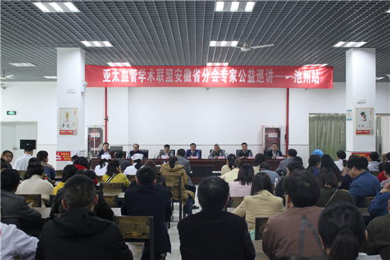 为提高池州及周边地区血管外科的整体诊疗水平,推动血管外科专业发展,加强专业技术间的沟通与交流,10月19日下午,亚太血管学术联盟安徽分会池州站公益巡讲在我院成功举行。活动当天,会场座无虚席,来自我院相关科室、乡镇卫生院及周边地区兄弟单位医务人员100余人聆听了此次公益巡讲。