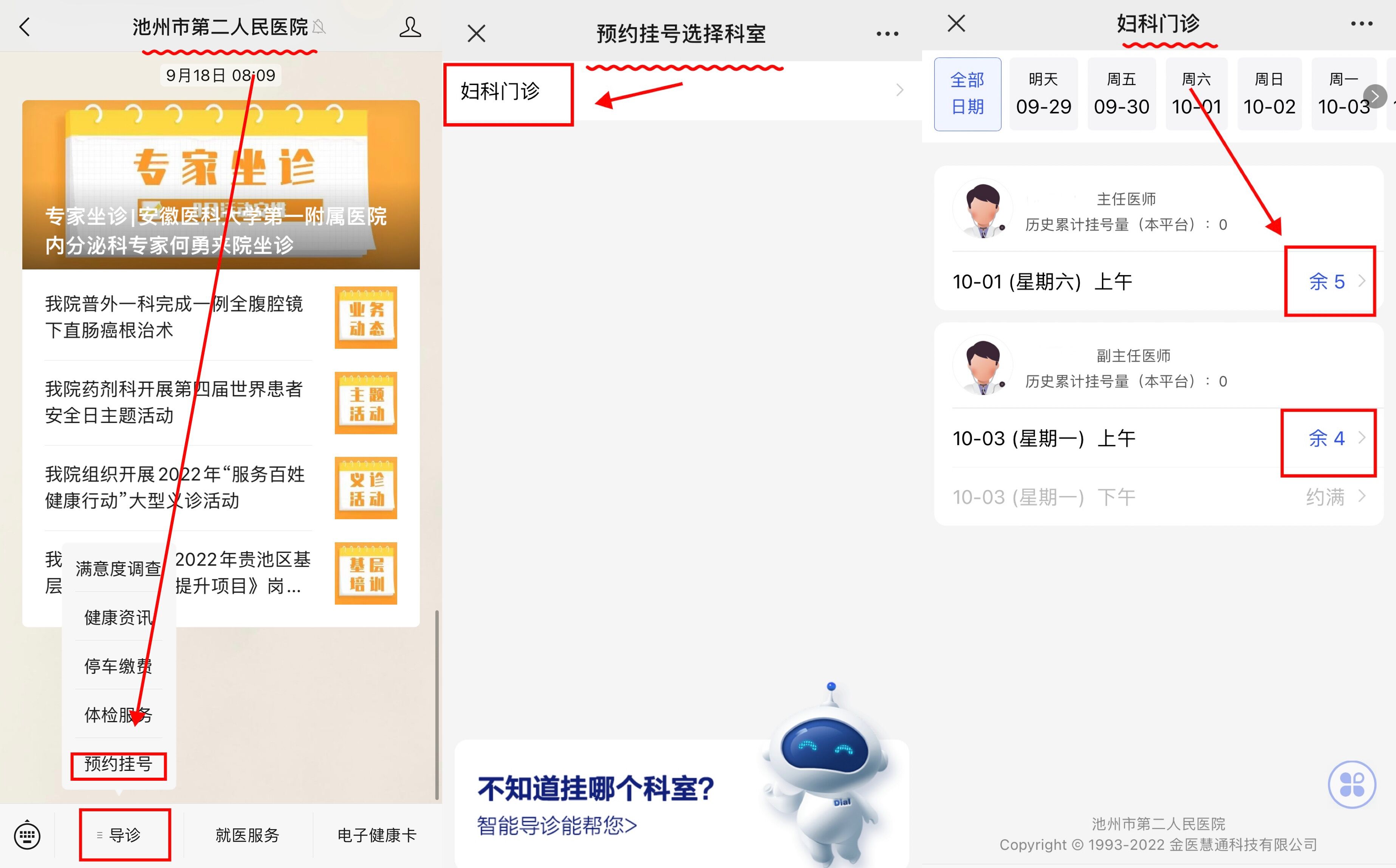 三、进入妇科门诊界面——选择专家进入——选择就诊时间段确定即可