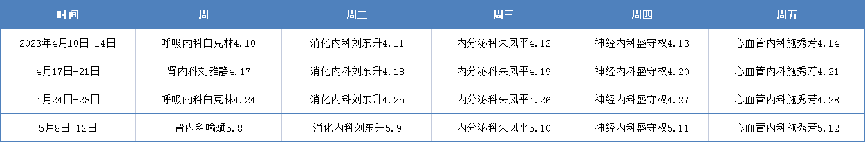 >> 池阳社区服务中心门诊坐诊人员排班表(4月-5月)
