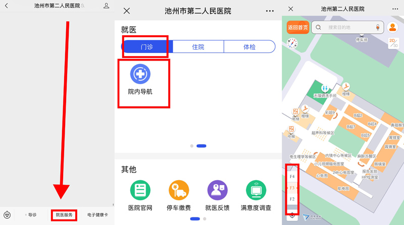 2、按以下步骤搜索院内导航(图3可按楼层索引)
