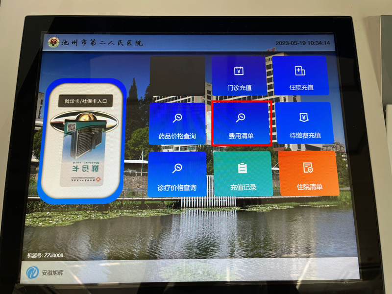 方法二:可携就诊卡在自助缴费机上查询