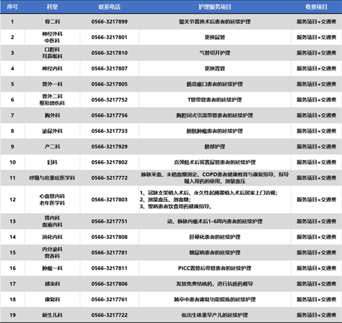 为聚焦人民群众日益增长的多元化护理服务需求,我院开展了系列延续护理服务。延续护理服务是由我院资深的专科护理团队组成的,延续护理服务可为我院出院后高龄患者或罹患疾病且行动不便的特殊人群提供的电话预约或现场预约申请、线下上门护理的服务。