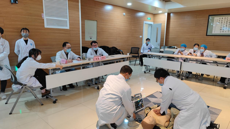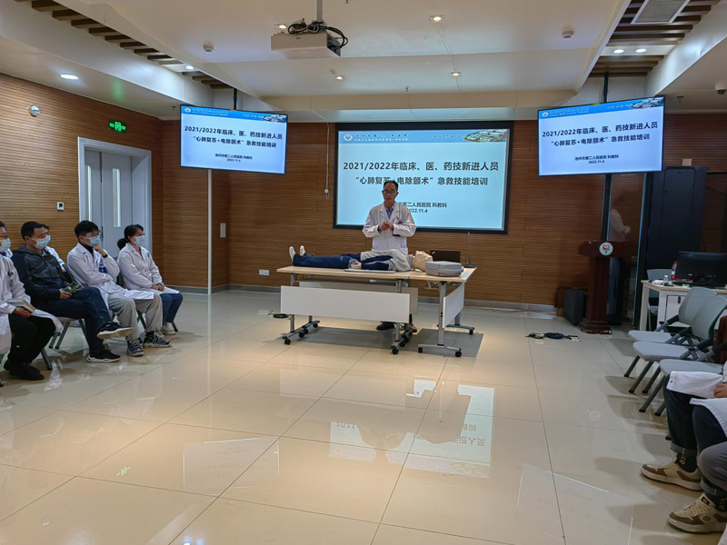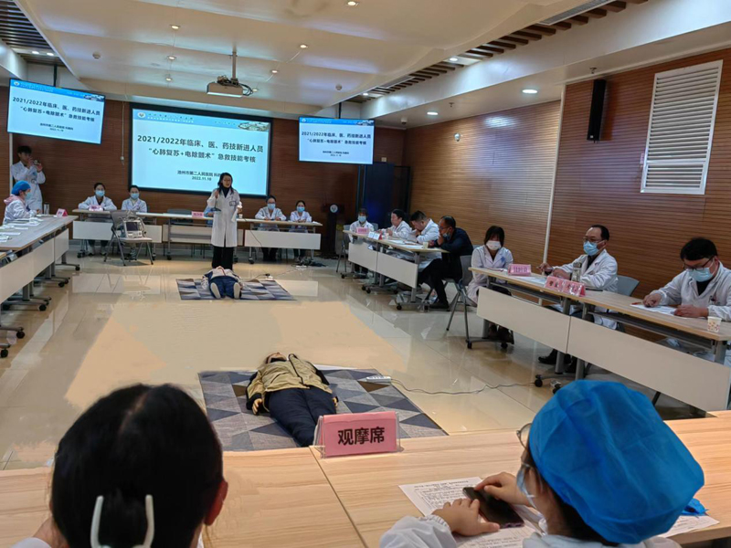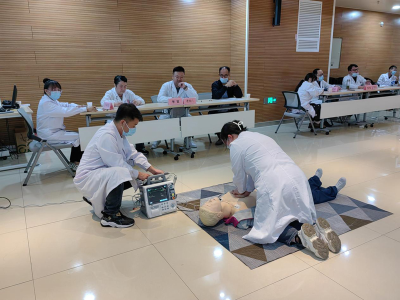 为进一步提升医院医疗急救技能水平,达到急救技能人人过关的目标,我院科教科于2022年11月4日至11日,在远程会诊中心组织了“心肺复苏+电除颤术”综合急救技能培训与考核,来自2021/2022年新进医务人员、2022年度实习生、2022年度基层卫生服务能力提升人员共90余人分批参加了培训与考核。