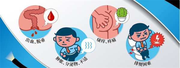 内痔的主要临床表现为出血、脱垂、肿胀、疼痛、瘙痒、分泌物、肛周不适、肛门肿块和排便困难等。