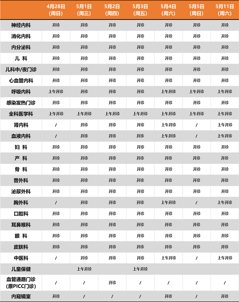 体检中心:4月28日、5月11日正常开诊,放假期间不开诊;