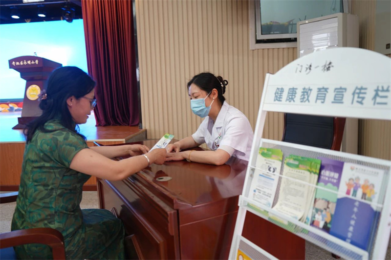 随后,体检中心主检医师现场为教职员工解读体检报告,同时发放预防高血压,糖尿病等宣传资料。