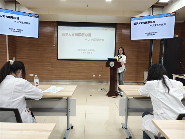 根据培训计划,科教科首先介绍了医院概况、医院相关规章制度、教学工作开展情况以及实习、带教相关管理规定,随后就“有时去治愈,常常去帮助,总是去安慰”,阐述了医学人文在临床实践中的重要意义 ,强调要将医学人文践行在带教的每个环节,努力将学生培养成有温度的医者。