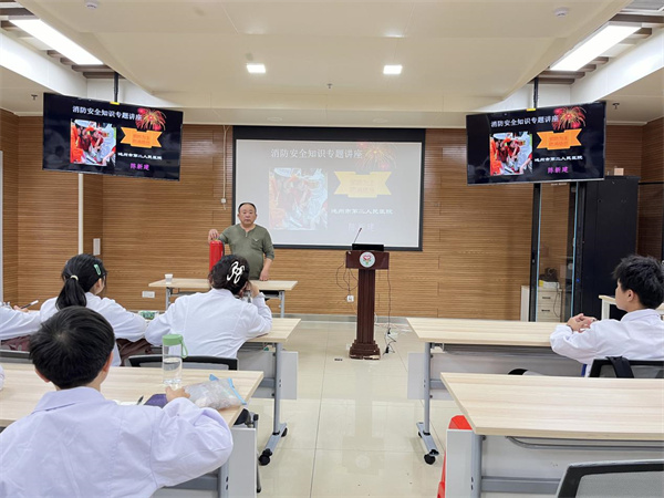 保卫科用以案示警的方式对实习生进行了消防安全知识培训,并现场示教了灭火器使用流程