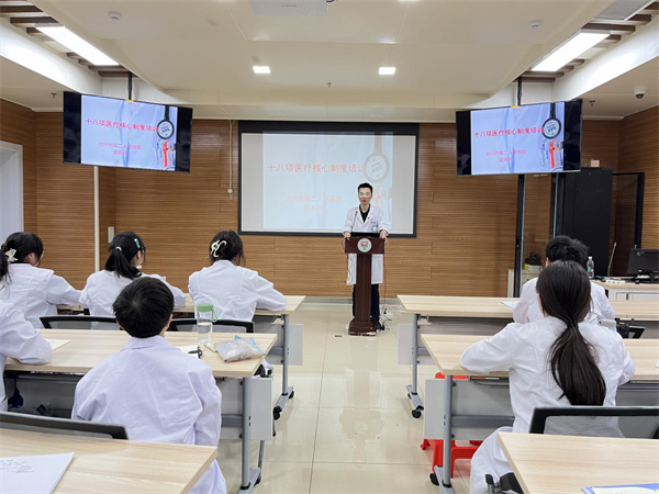 培训伊始,何东发表致辞,他强调,同学们在未来的实习过程中,要尽快适应医院的工作节奏和环境,要刻苦钻研、提升素质,积累临床技能和经验;要统筹安排、有效规划,为今后的职业生涯奠定坚实的基础;其次要求带教老师应具有高度的责任心,对实习生的学习、生活、思想状态等方面给予关心和关注。