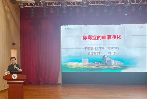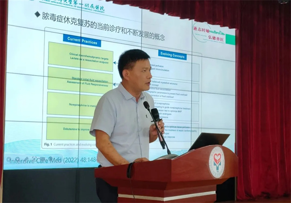 “大咖授课”环节,来自安医大一附院的邵敏教授、王楠教授、许伦兵教授以及刘念教授分别以《脓毒症治疗最新进展》《血气分析的临床应用》《休克的分类诊疗》《脓毒症的血液净化》为题授课,内容深入浅出、见解新颖、针对性强,以现阶段“脓毒症规范化诊治领域”的堵点、难点、重点进行了详细解读,我院姚力、刘雅静及周桃喜等五位专家参与了现场互动,气氛热烈。