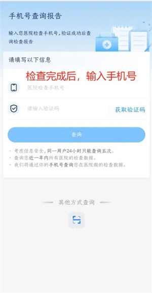 输入手机号可以获取该手机号已经完成发布的一年内的省内影像检查