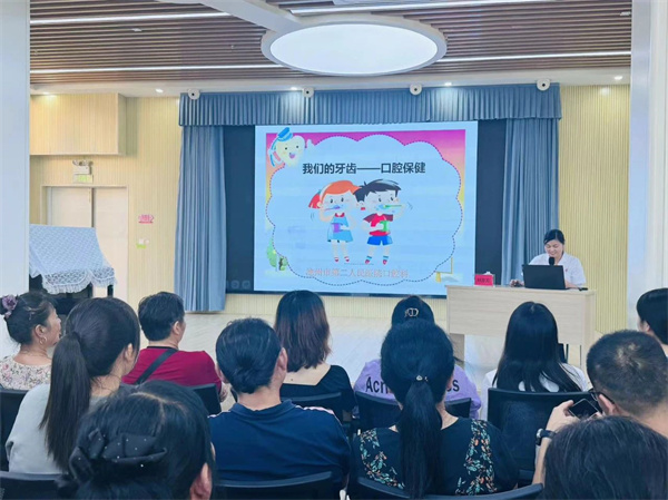 义诊结束后,刘方方为家长和小朋友们举办了口腔保健专题讲座。针对检查中发现的龋齿、反颌等问题,刘方方给予了专业的指导和解答。