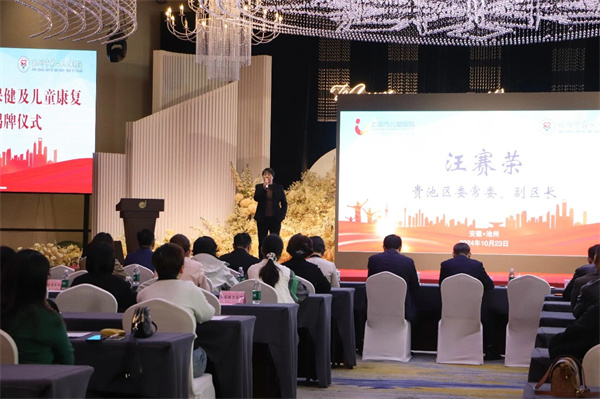 汪赛荣在致辞时指出,儿童是家庭的希望,是社会和民族的未来。池州市二院与上海市儿童医院携手合作,共同打造儿童保健及康复诊疗基地,是我区医疗卫生事业发展的又一成果。希望市二院以此次合作为契机,深化合作交流,推进儿童保健、儿童康复技术应用等关键领域的科研创新,力争在儿科内涵建设、人才队伍建设、科研教学等方面取得长足进步,共同推动儿童健康事业的发展。同时,也希望广大医务人员不忘医者初心,主动向各位专家教授学习请教,扎实掌握儿童诊疗的各项理论基础和操作技能。