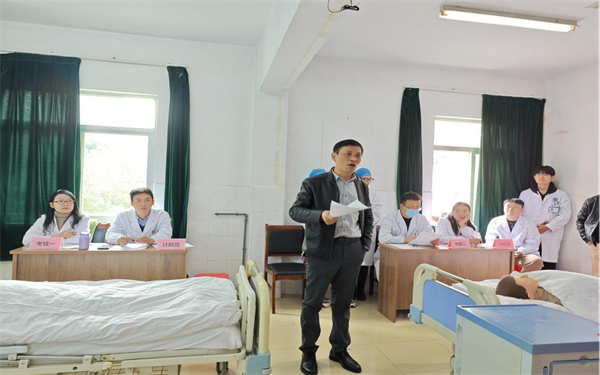 在技能考核现场,副院长何东提出具体要求,并强调规范的医疗操作与急救技能是确保医疗安全与质量的核心命脉,更是每一位医务人员必须具备的基本素养与专业能力。医务科副科长张兆君,急诊科副主任周桃喜、心内科副主任施秀芳以及科教科科长程贵霞担任本次技能考核考官,确保考核过程的公平、公正、公开。