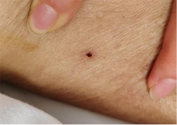 呼吸与危重症医学科随即给予抗感染、保肝等治疗,但患者仍反复高热,血小板呈进行性下降(最低至“25×10^9/L”)并出现嗜睡、定位障碍及皮肤淤斑等症状。医生查体发现患者左小腿可疑焦痂,结合其发病前种植油菜的病史,高度怀疑 “发热伴血小板减少综合征(重型)”。我院立即加强监护、单间隔离,并进行布尼亚病毒核酸、疟疾、伤寒等病因筛查,最终新型布尼亚病毒核酸检测呈阳性,明确诊断为新型布尼亚病毒感染,推测病因为蜱虫咬伤所致。