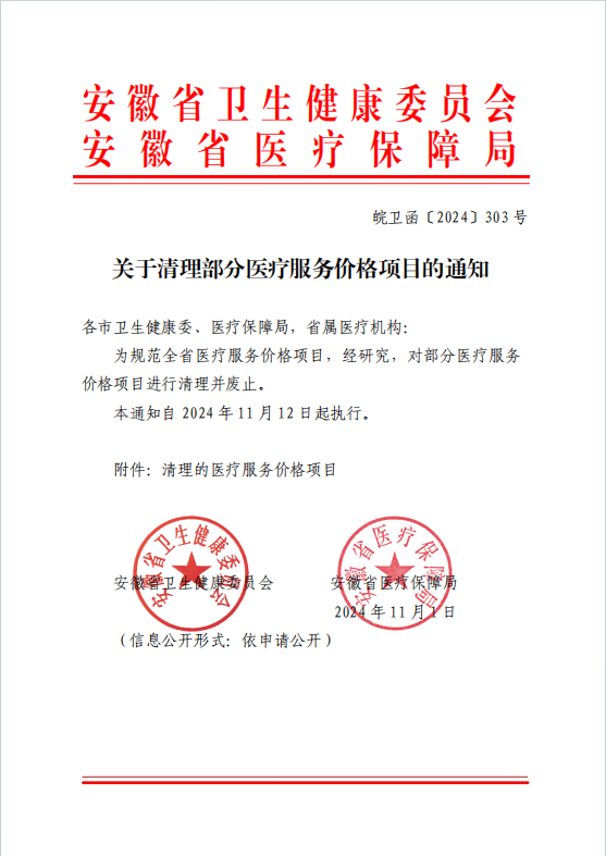 关于清理部分医疗服务价格项目的通知(皖卫函〔2024〕303号)