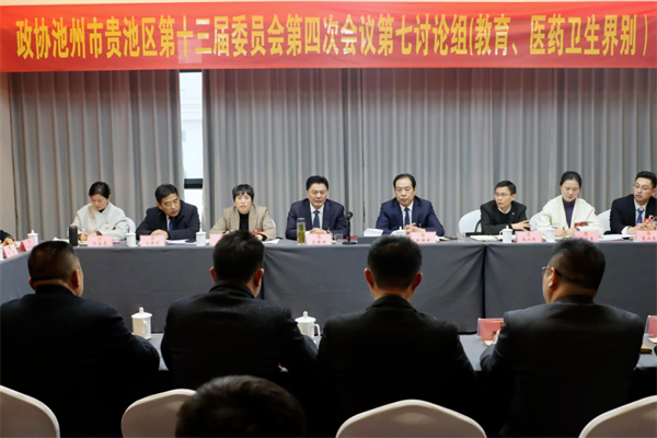 2025年1月5日下午,中共池州市委常委、贵池区委书记马胜利出席中国人民政治协商会议池州市贵池区第十三届委员会第四次会议分组讨论会场,参加了第7小组(教育医疗)的讨论。区政协主席鲍胜利,区委常委、副区长汪赛荣参加。在认真听取了委员们的发言之后,马胜利书记发表了热情洋溢的讲话。