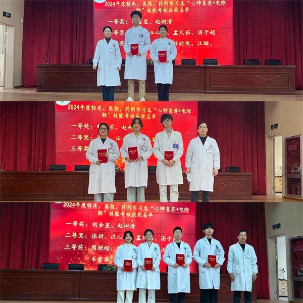 党委委员、医务科科长张国柱宣读了“2024年度优秀带教老师、优秀学生以及技能考核优秀”的获奖名单,并和部分科主任一起颁发了荣誉证书,他希望受到表彰的老师和同学们能够再接再厉,争取在今后的学习和工作中取得更好的成绩。
