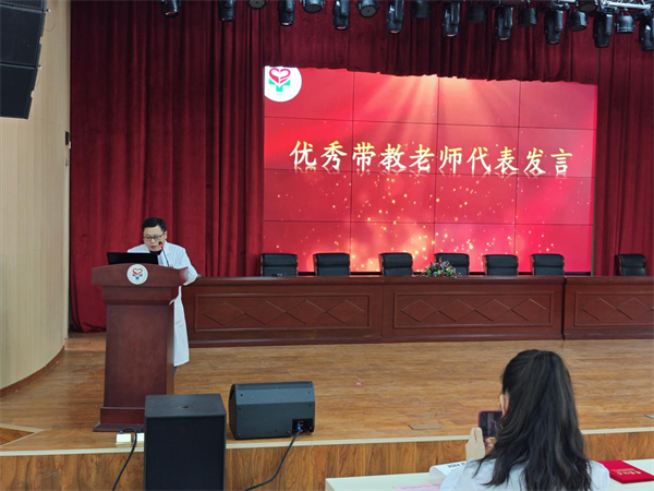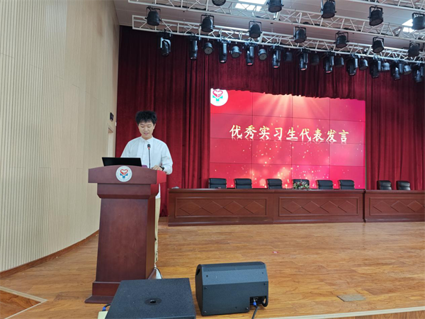 普外二科副主任医师徐坤作为优秀老师代表分享了带教经验;胡金星同学作为优秀学生代表,汇报了实习经历,并对医院的辛勤栽培表达衷心的感谢。
