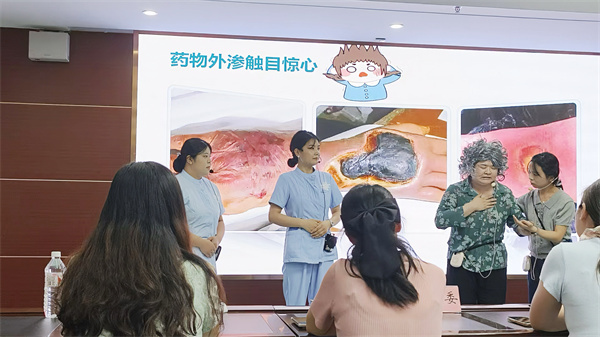 本次竞赛旨在提升静脉治疗标准化、专业化水平,推广新理念、新技术。普外二科团队创新性地选择了情景剧表演作为科普载体。其参赛作品《港港港,“港”清楚》聚焦“输液港”这一专业领域,通过生动形象、通俗易懂的剧情演绎,清晰科普了输液港的工作原理、适用人群、临床优势,并重点讲解了患者居家的日常维护与护理要点。该作品将专业医学知识巧妙融入生活场景,兼具科学性、趣味性与实用性,其出色的创意和表现力赢得了评委专家的一致好评和现场观众的热烈反响,充分展现了我院护理人员的专业素养与科普创新能力。