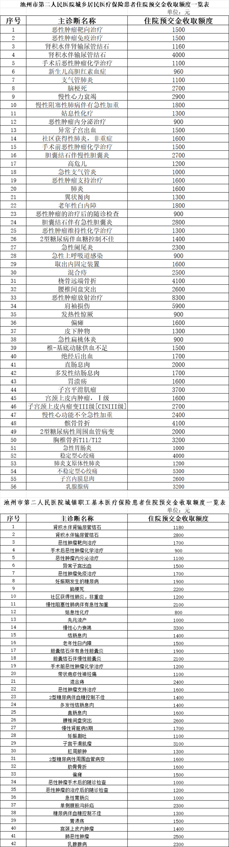 池州市第二人民医院住院预交金收取额度标准公示
