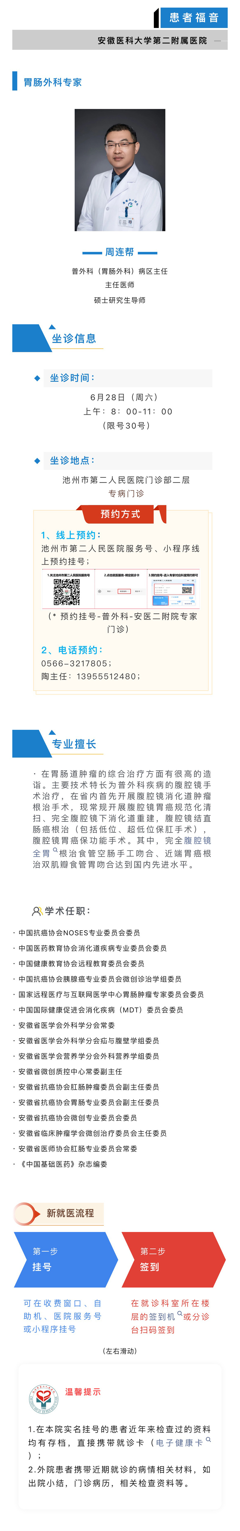 >> 关注!6月28日,安徽医科大学第二附属医院胃肠外科周连帮主任来院坐诊、手术