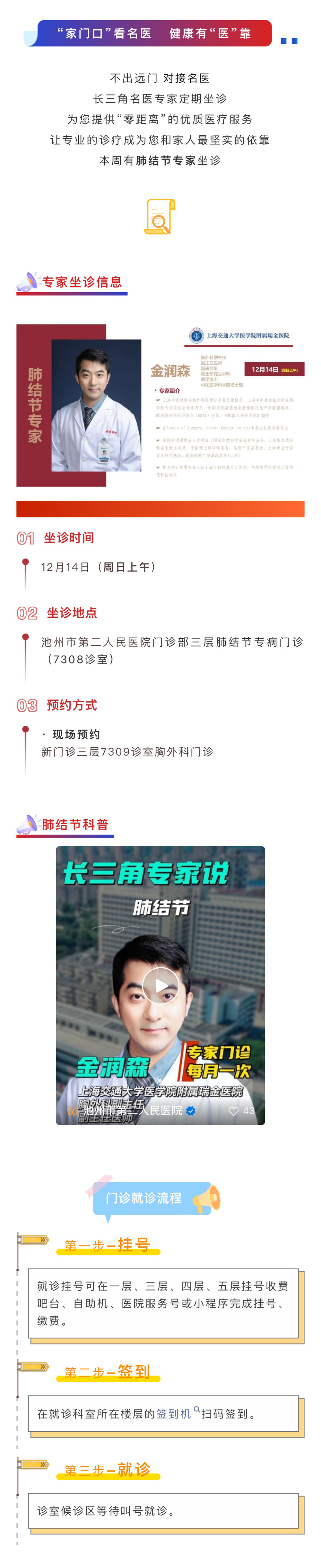>> 关注!12月14日(周日),上海交大医学院附属瑞金医院胸外科金润森教授来院坐诊、手术