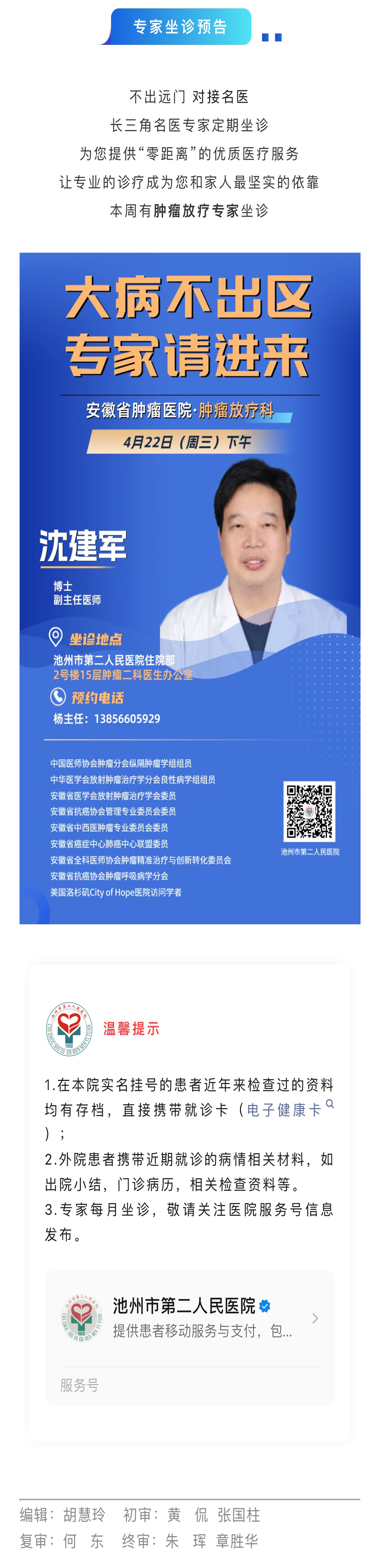 >> 【名医坐诊】4月22日,长三角肿瘤放疗科专家来院坐诊