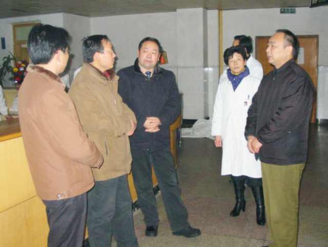 2月4日上午,区委书记刘礼生、区委副书记王正武,在区卫生局局长方忠生陪同下,冒着严寒前来我院视察指导救灾防病工作。刘书记详细询问了药品、器械等救灾物资贮备情况,对奋战在临床一线的医务工作者表示亲切慰问,向全体医务人员拜个早年,并勉励大家发扬救死扶伤的优良传统,夺取救灾防病工作的全面胜利。 二院办公室 2008年2月4日