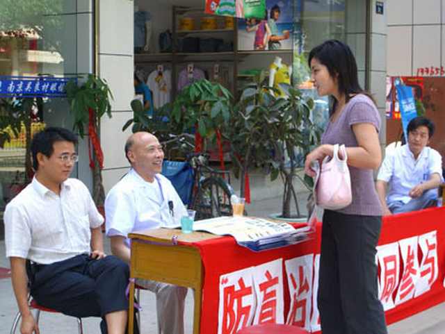 6月6日国际爱眼日,我院职工走上街头开展“防盲治盲,我们共同参与”为主题的义务咨询活动,以实际行动为防盲治盲工作做贡献。