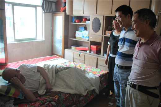 在庆祝建党95周年之际,为充分体现党组织对老党员、生活困难党员的关怀,7月6日上午,我院党办主任张庆多、机关党支部书记吴鹏程、组委江晶一行三人赴我院离退休、困难老党员钟守谦家中送去慰问金、营养品以及党组织的关怀。钟守谦老人现已84岁高龄,因患脑梗塞行动不便,长期卧床家中。张庆多一行走到钟老床前,询问老人的身体状况,安慰老人好好保重身体,并感谢他为医院的发展,为贵池区人民群众的健康做出的贡献。钟守谦老人对党组织的关怀表示了深深感谢,并希望医院发展越来越好。