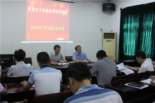 为切实推进我院新常态下的医德医风建设,增强思想觉悟,加强医德修养,减少医患纠纷,提高人民群众对医院医疗服务的满意度。我院科教科根据《2016年度加强新常态下医德医风建设培训计划》,于2016年7月26至29日下午,培训以播放教学片的形式分两批对全院医务人员进行培训。