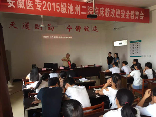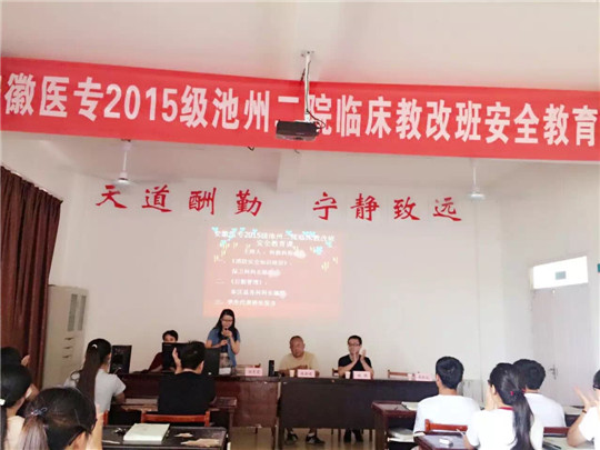 “生命至上,安全为天”,在安徽医专2015级临床教改班开学之际,9月2日下午,我院科教科组织开展“安徽医专2015级临床教改班安全教育培训”,保卫科科长陈新建、东区总务科负责人施颖参加了培训会,会议由科教科科长程贵霞主持。