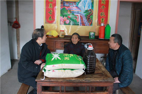 陈院长一行深入杨棚村14户贫困户,向每户贫困户发放了两袋大米、一壶香油。每到一户,院领导与困难群众亲切交谈,了解他们的生产和生活情况,并送上党和政府的关怀及新春祝福。