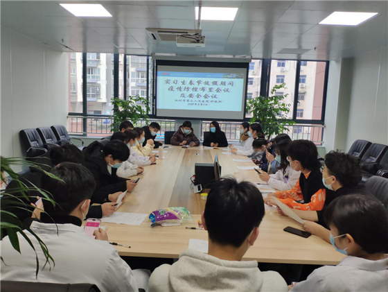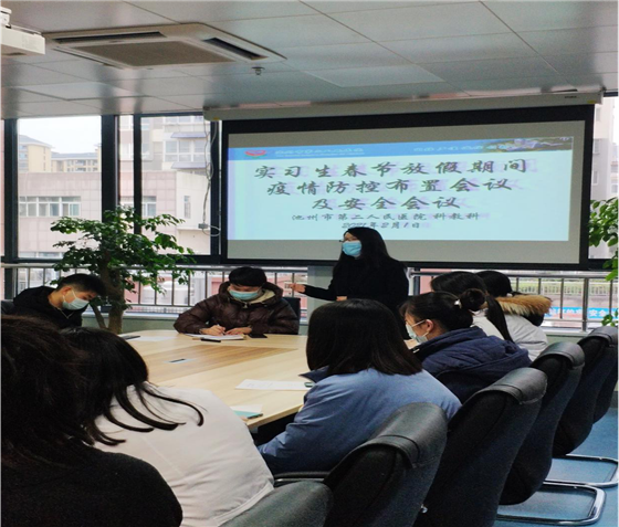 2021年2月1日,我院科教科组织召开了实习生春节假期期间疫情防控布置及安全会议,会议由科教科长程贵霞主持。共21名实习生参加了会议。