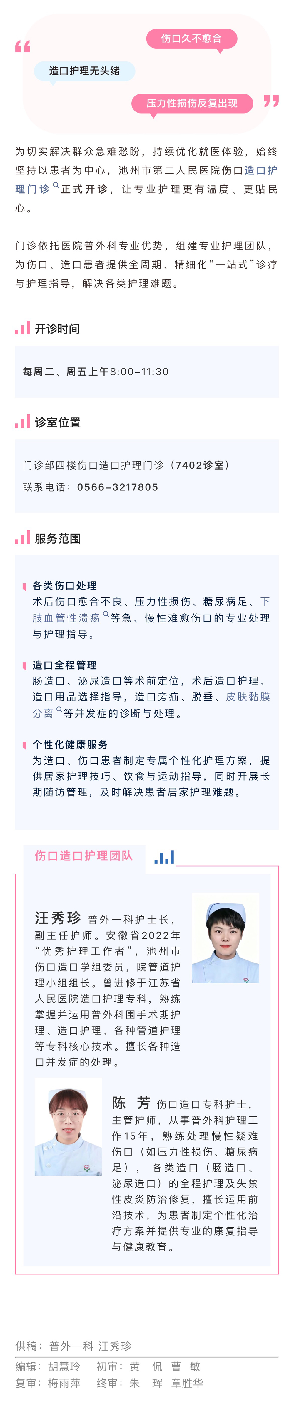 【护理门诊】伤口有牵挂 护理有温度——池州市第二人民医院伤口造口护理门诊正式开诊