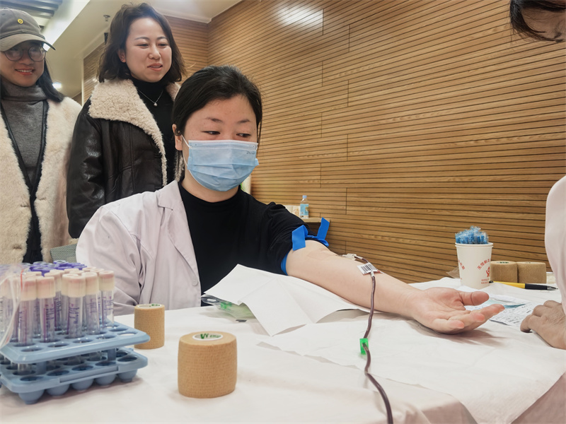 上午八时,院内献血点秩序井然。在血站工作人员的引导下,参与献血的医务人员依次完成登记填表、体检征询、血液初筛等流程。献血队伍中,有刚下夜班便匆匆赶来的临床医生,有利用轮休专程返院的护士,有行政后勤管理人员,也有实习同学等等。他们虽来自不同岗位,却都怀揣着一个共同的朴素愿望——用热血传递希望,为生命接力护航。